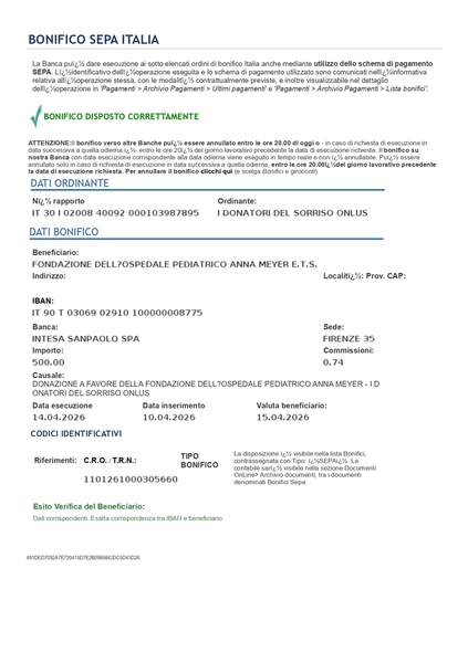 Donazione Ospedale Pediatrico Anna Meyer di Firenze.